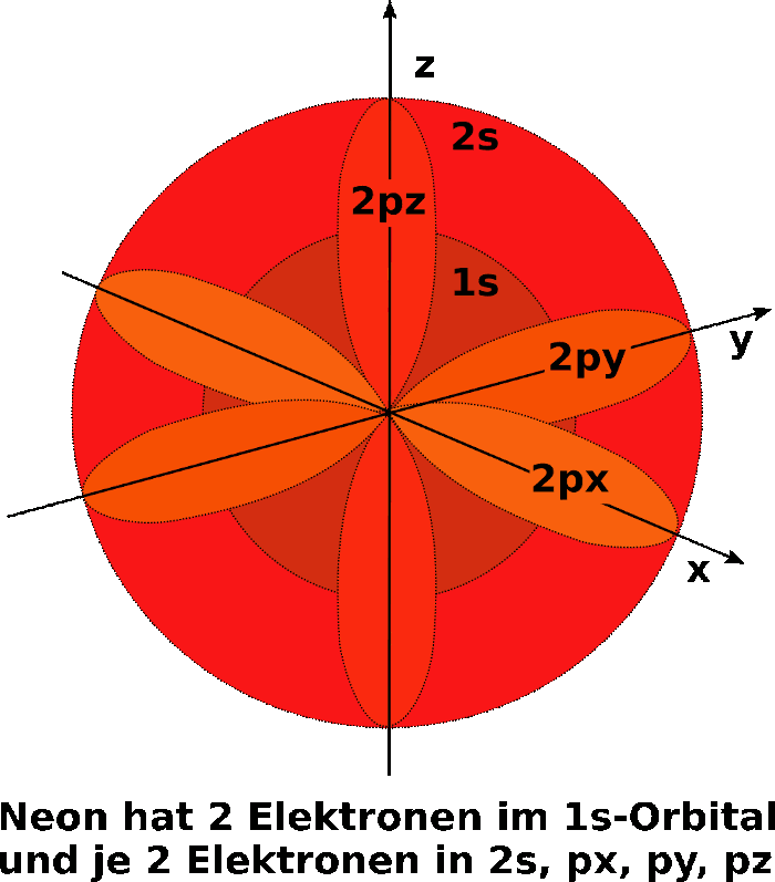 Beachte: das 1s-Orbital ist dabei etwas kleiner als das 2s-Orbital, welches wiederum kleiner als das 3s-Orbital ist.